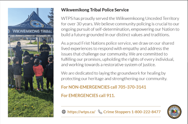 WIIKWEMKOONG – January 8, 2025 – The Wikwemikong Tribal Police Service (WTPS) is set to launch a comprehensive initiative in 2025 aimed at closely monitoring repeat offenders within the community. This effort underscores our commitment to addressing community concern regarding the tracking of repeat offenders and recidivist crime.